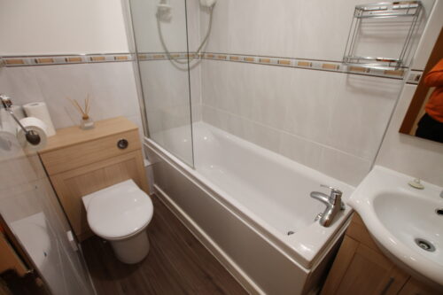 The accommodation comprises: Entrance hallway, lounge, fitted kitchen, two bedrooms with storage, bathroom with over-bath shower.